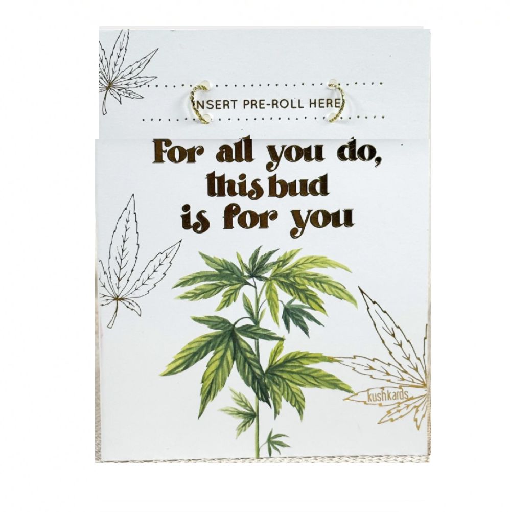 It's time to remind our best buds how much you mean to them! Say it with this new "Bud for You" KushKard, the Original Cannabis Greeting Card! A gift with a lift, get it with the matching green one hitter, or without so you can attach your own pre roll. Write your own message inside and tell your best bud how much they mean to you.